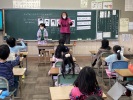 名張市栄養教諭による、「給食室の秘密」の授業がありました。子どもたちは、給食が作られる様子を見て、まず、その道具の大きさに驚いていました。調理員さんは、みんなの健康を考え「おいしくなあれ」との願いを込めて作っていることも分かりました。その日の給食は、いつもより苦手な物も食べることができた子が多かったです。給食って大切だなあ、調理員さんありがとうという気持ちをもつことができました。