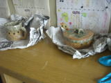 これは、伊賀焼きが完成してできあがった写真です。 いろんな物をねんどで作りました。 とても楽しかったです。 |
