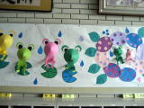 これは、図書委員の人がげんかんに張ってくれました。 季節にあわせています。もうじき梅雨の季節です。 |