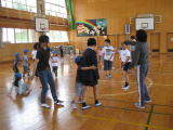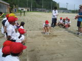 滝之原保育所との、交流会です。 これは、じゃんけんれっしゃをやっているところです。 |