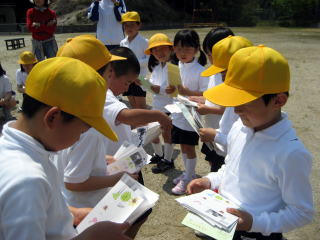 これは六年生が一年生のみんなにプレゼントをわたしているところです。一年生のみんながとっても喜んでくれてうれしかったです。 |