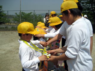 みんなで遊んだあとに、一年生の子たちが「よろしくお願いします。」というような言葉を言ってくれました。入学してきたばかりだけど、きちんと言えていてすごかったです。 |
