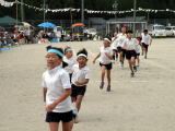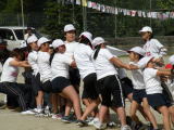 保護者の方も入って綱引きをしているところです。みんな一生懸命に、 必死にがんばりました。全力で綱を引きました。 |