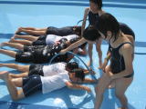 4,5,6年生でプールの中をそうじしました。 最初は水がつめたかったけど、だんだん気持ちよくなって いきました。 おたまじゃくしがたくさんいて助け出しました。 |
