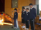 緑の少年隊活動の報告をしているところです。服も着ていてカッコイイ?です。 |