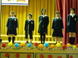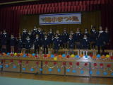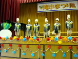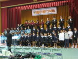 まず全校みんなで音楽の発表をしました。 ちょっときんちょうしたけど、大きな声で歌うことができました。ベルもじょうずにできました。 |