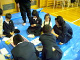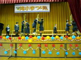 2・3年生は、昔の生活を学ぼうというだいで、昔の遊びを発表してくれました。げきがとっても楽しかったです。 |
