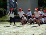 比奈知の大勢の友達に圧倒されながらも 応援合戦は一緒に声を合わせたりウェーブをしたり・・・一生懸命綱を引き、がんばりました。
