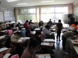 | 小中一貫教育の一つとして、赤目中学校の先生が百合小の授業の様子を見に来ました。 6年生の子たちの集中して学習している姿を見て、中学校の先生たちも入学を楽しみにしてくれていました。 |