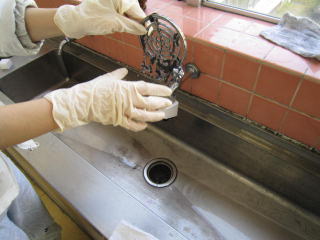 | 校舎内にある手洗い場のいくつかが、手をかざすと自動で水が出るようになりました。 子どもたちは、楽しそうにちょっと笑いながら手を洗っていました。 この自動水栓機器は、全部の手洗い場に、2〜3ずつ設置しています。 |