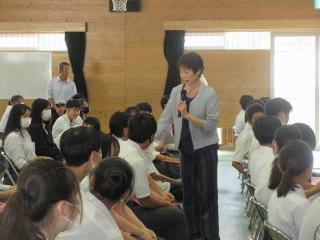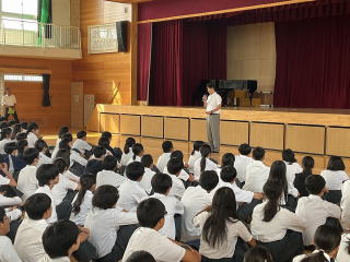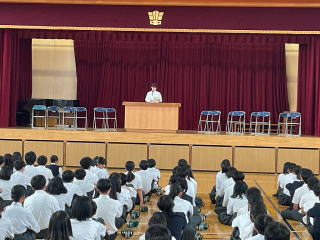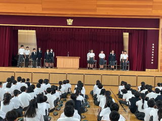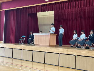 生徒会立合演説会がありました。初めに選挙管理委員からの話があり、後期生徒会の立候補者の演説がありました。推薦人含め計14人の生徒が登壇し、しっかり演説していました。終了後に各クラスでの投票を行い、後日結果が発表されます。