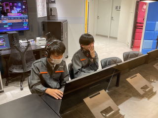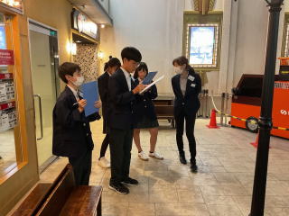 キッザニア甲子園に到着し、楽しく活動を行っています。