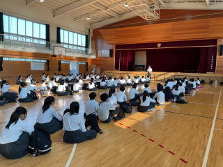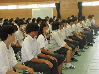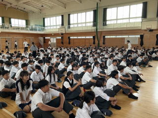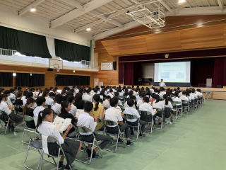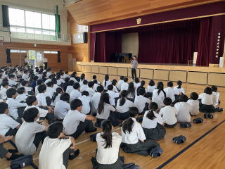 3限目に体育館で説明会を行いました。修学旅行の目的や行程、注意事項などを確認しました。保護者の皆様、暑い中でしたがありがとうございました。