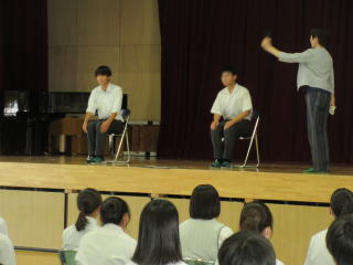 5限目に職場体験に向けての事前学習として、マナー講座を行いました。株式会社アイビーエーより、斉藤和子先生を講師としてお招きし、3年生を対象に礼儀作法や、マナーの講演をしていただきました。