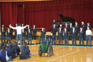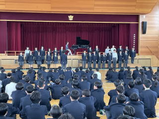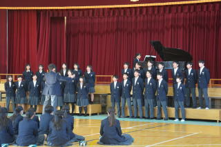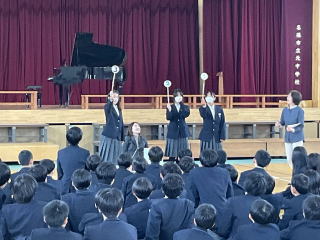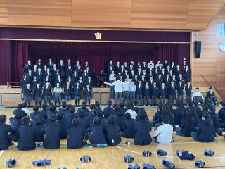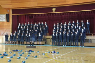 | 1・2年生合同の合唱コンクールがありました。緊張した雰囲気の中でしたが、始まると各クラスここまで頑張ってきた練習の成果を一生懸命に発揮してくれました。また学年合唱もあり、とても迫力のある歌声が体育館に響いていました。 |