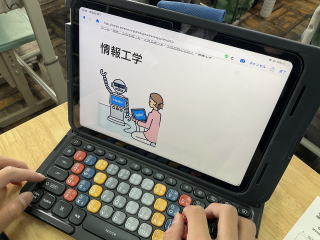 | 現在、1年生はキャリア学習を行っています。将来について、自分の性格や得意なこと、苦手なことを考えたり、タブレットを使って職業診断を行ったりしました。今後は職業調べを行い、各クラスで発表する予定です。 |